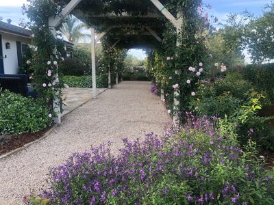 I am a 9th generation Santa Barbarian. I love gardening but I'm also a natural light outdoor photographer and loves having relaxing beautiful places to see from all angles. I am a fan of whimsical things little nooks of surprises. Having this garden has been great during the pandemic. It also comes in handy for making our own bouquets for my mom for Mother's Day, anniversary and her birthday as well as every year using our own flowers to toss and give out at the children's parade at fiesta. My backyard has my fences area for my fruit trees, vegetable plants and grape and kiwi vines and my front yard is more native, water wise plants away from our pets.